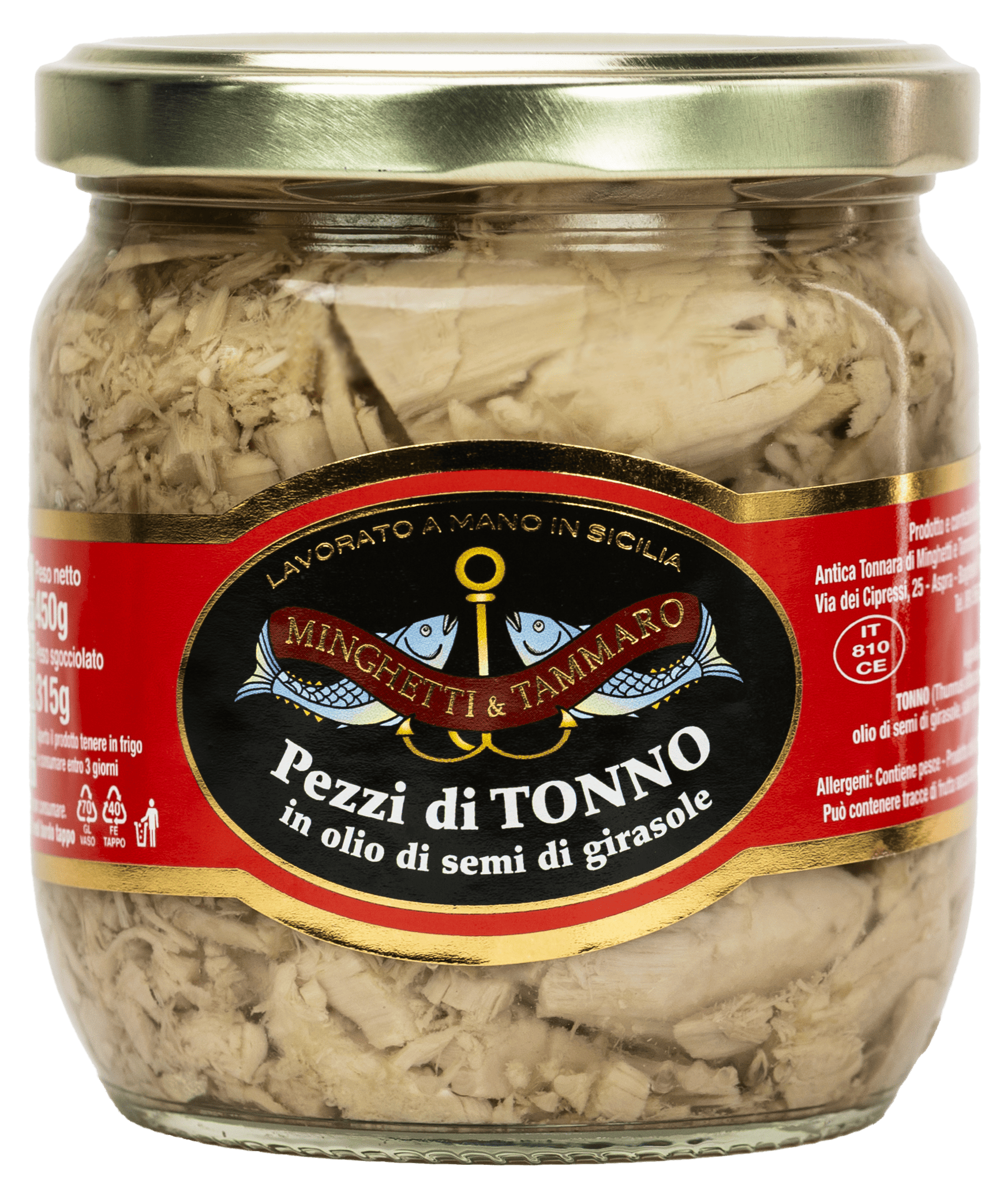 Découvrez le goût pur et authentique du thon en morceaux en huile de tournesol – 200 g, élaboré artisanalement par Antica Tonnara di Minghetti & Tammaro S.R.L., située à Aspra, en Sicile. Ce produit de qualité supérieure est préparé à base de thon Yellowfin (Thunnus Albacares), sélectionné avec soin et conservé simplement dans de l’huile de tournesol et du sel.