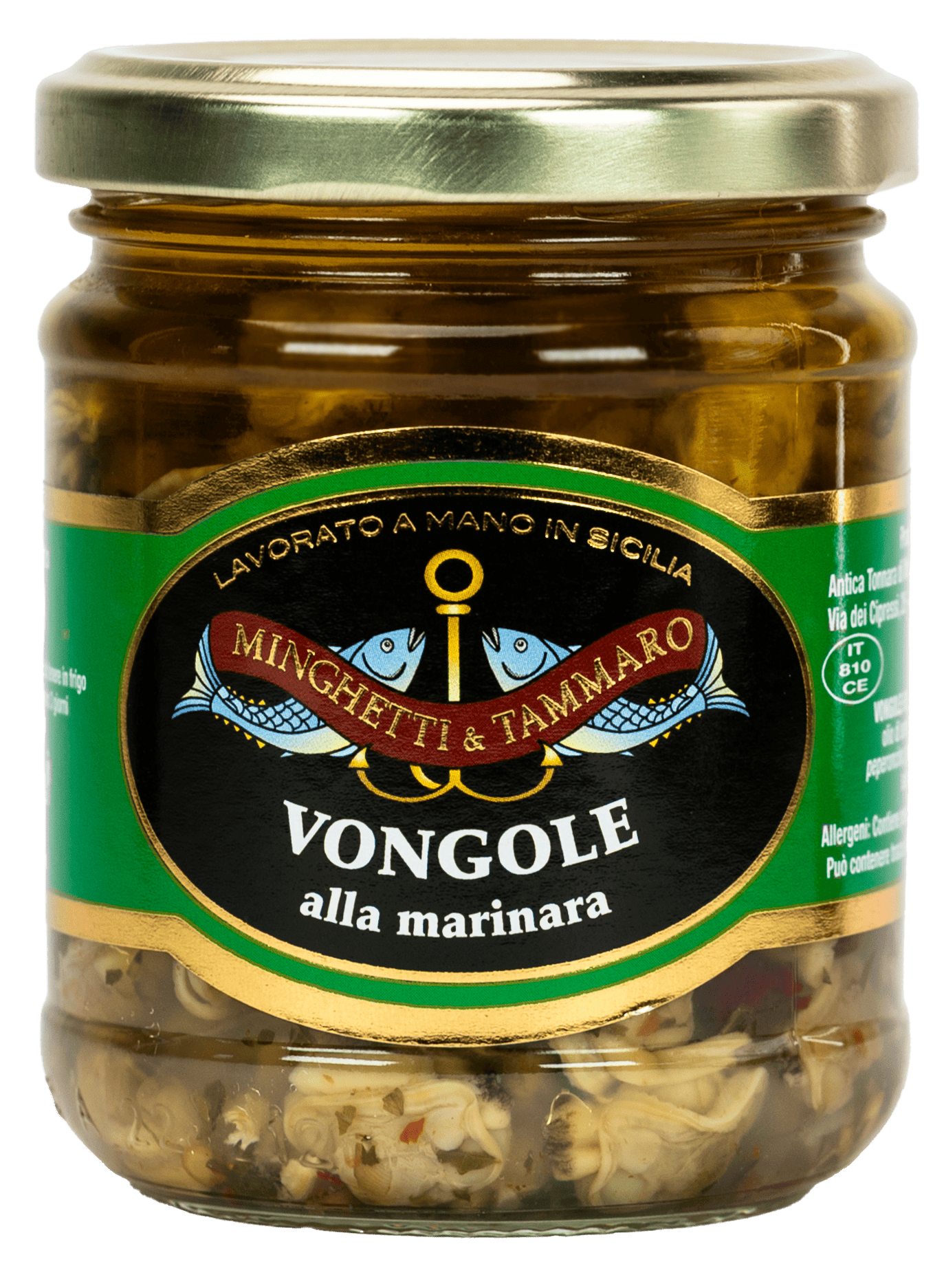 Redécouvrez toute la richesse de la cuisine italienne avec les Vongole alla Marinara de Antica Tonnara di Minghetti & Tammaro S.R.L., une spécialité élaborée à Aspra (Sicile). Ce produit gourmet est composé de 60% de vongole (palourdes) rigoureusement sélectionnées, mijotées dans une huile de tournesol (30%), relevées d’ail, de piment, de persil, d’une touche d’acide citrique, de sel et d’eau de cuisson (10%).